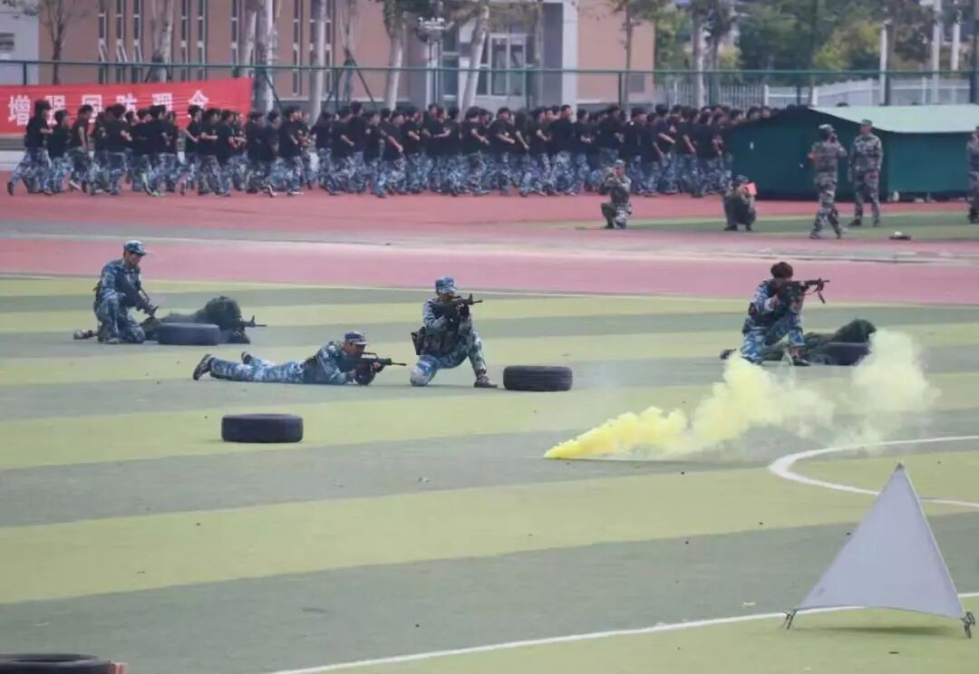 庄严的升旗仪式结束后,军训汇报表演随着连队英姿飒爽的步伐拉开帷幕。我院方阵着装规范、气势如虹,在教官带领下,以整齐洪亮的口号和铿锵的步伐通过主席台,生动诠释了新生们纪律严明、朝气蓬勃的青春风采。擒敌拳、警棍盾牌操、防爆队形演练、红蓝对抗等军事科目表演环节,身着迷彩的同学们队列齐整,招式利落,将青春活力与坚韧意志展现得淋漓尽致。新生们的精彩表现震撼全场,掌声此起彼伏。这场军训汇演,鲜明展现了新生坚韧不拔的意志与迎难而上的奋斗作风。