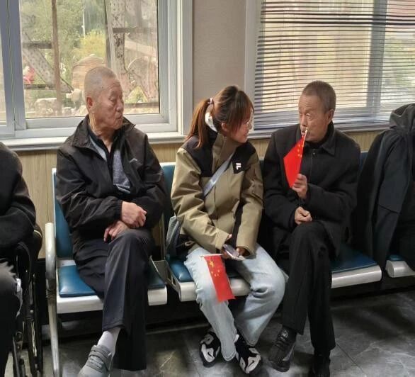 活动尾声,志愿者们献唱红歌,一人起头,众人跟唱,《歌唱祖国》《我和我的祖国》等经典曲目接连上演。老人们被歌声感染,有的跟着轻声哼唱,有的用手打着节拍,还有老人拿起小红旗轻轻挥舞,红色的旗帜与灿烂的笑容相映,成为现场最动人的画面。在悠扬的合唱声中,本次志愿服务活动圆满落幕。