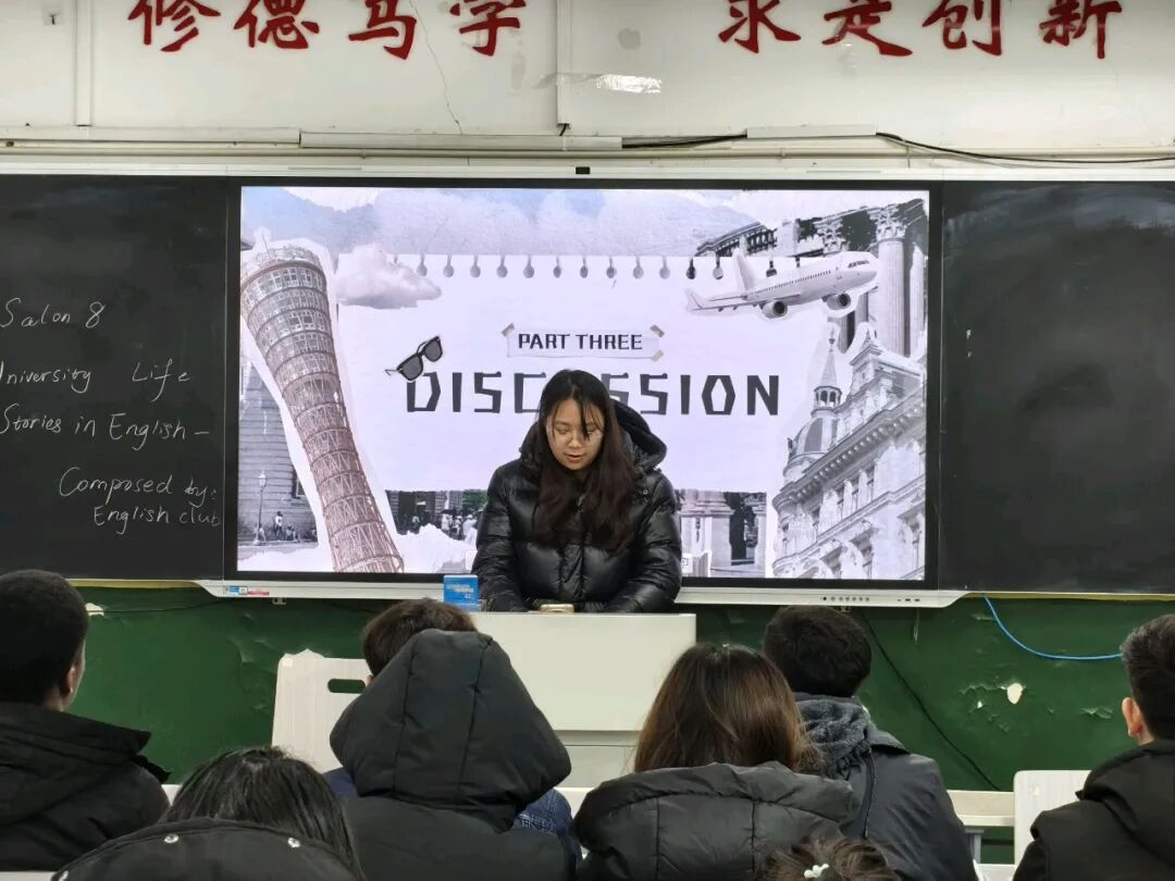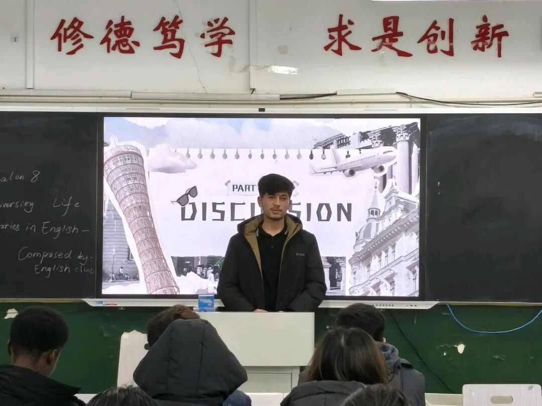 12月19日下午,由外国语学院主办、英语俱乐部承办的“语界沙龙”第八期在7号教学楼113教室举行。本期以“我的大学生活——用英语讲述我们的故事”为主题,吸引众多中外学生参与,共同用英语重温校园记忆。