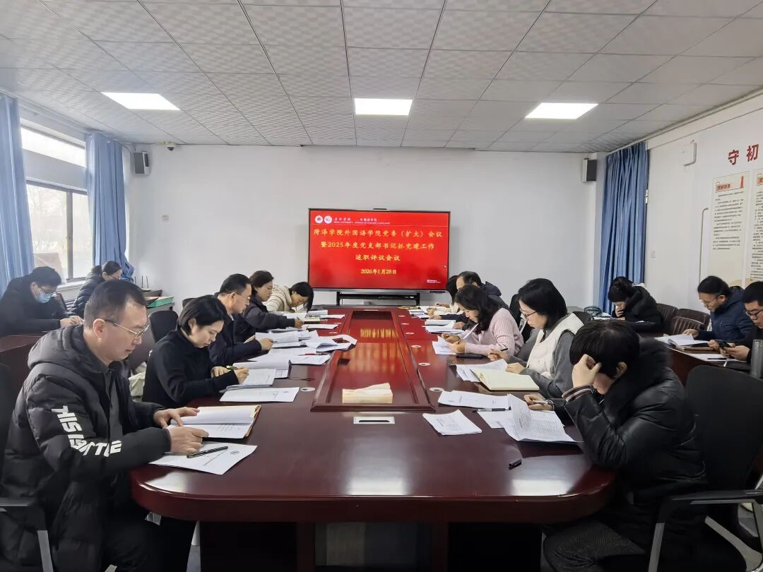 为进一步压实基层党建工作责任, 推动全面从严治党向纵深发展,1月28日下午,外国语学院党委在7号教学楼212会议室组织召开2025年度党支部书记抓基层党建工作述职评议和全面从严治党述责述廉评议会议。学院党委班子成员、党支部书记、党政办、教科办、团委和各系部主任参加会议,会议由学院党委书记樊庆勤主持。