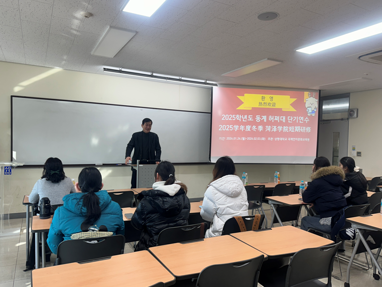1月27日上午10点,同学们怀着求知的热忱走进祥明大学语言课堂,研学之旅正式启幕。祥明大学国际语言文化教育院长赵恒禄率队在教室迎接,为同学们举行了庄重的开学仪式,让大家真切感受到祥明大学的严谨治学与热忱态度,也为本次研学之旅奠定了充实饱满的基调。仪式结束后,同学们正式开启韩语课程学习。