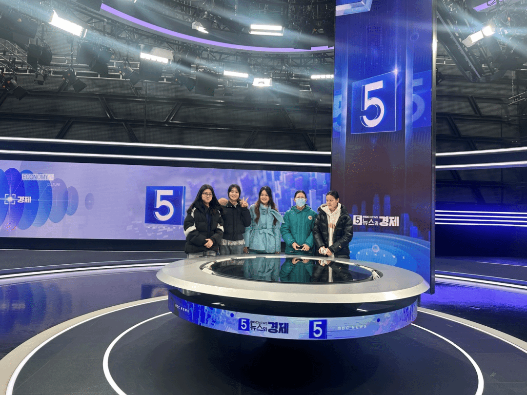下午,研学团队走进韩国知名电视台MBC,探访韩国大型室内演播厅,近距离观摩电视剧与综艺节目拍摄现场,触摸明星手印、了解节目幕后制作流程,真切感受韩国传媒产业成熟的运作体系与创新活力。