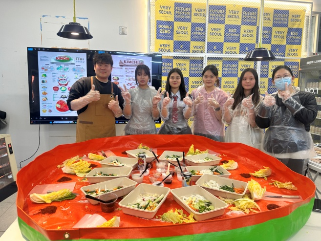 上午完成常规语言学习后,同学们迎来了备受期待的泡菜制作文化体验活动。在专业泡菜制作工坊,大家开启了一场味觉与文化的邂逅。从了解泡菜的历史渊源,到学习如何切食材、腌制工艺、酱料调配的科学原理,再到亲手将白菜与秘制辣酱充分融合,整个过程既是对人类非物质文化遗产的近距离传承,也是一次跨学科的知识启蒙。当亲手制作的泡菜密封装箱时,同学们收获的不仅是一份专属美味,更深刻理解了韩国“越冬泡菜文化”中蕴含的协作共享精神。