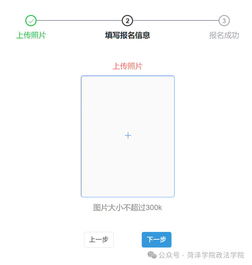 (照片大小300K以内,jpg格式。上传照片可直接打印在报名登记表上。)