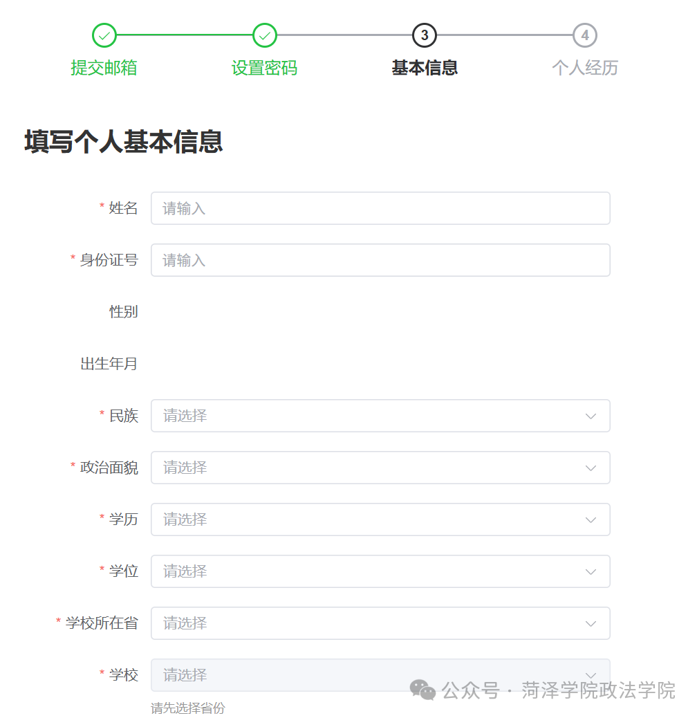 ◆ 认真填写个人基本信息、个人经历等,完成注册。