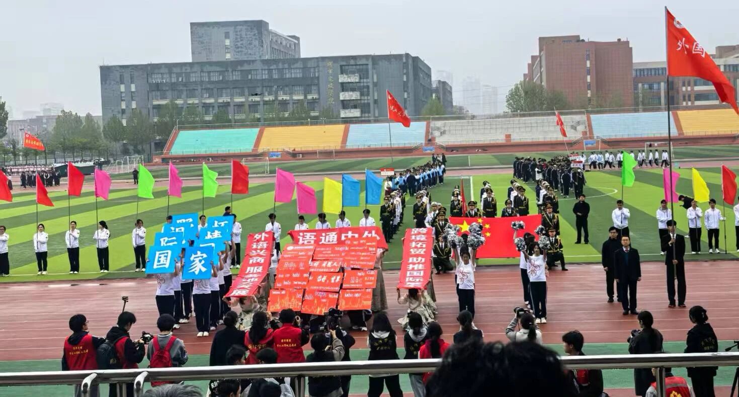 开幕式上,外国语学院方阵步伐铿锵、队列严整,伴随着“语通世界架长桥,言贯中西展襟抱,百舸争流勇当先,外院健儿志凌霄”的嘹亮口号,精神抖擞步入运动场,充分彰显了外院师生饱满的热情与坚定的信念,成为开幕式上一道亮眼的风景。