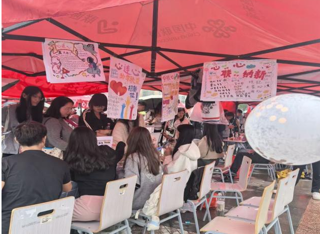 心连心助学联盟在本次文化节中准备了破冰小游戏。同学们通过抽签分组,合作完成趣味任务,在活动中展示社团特色与活力。