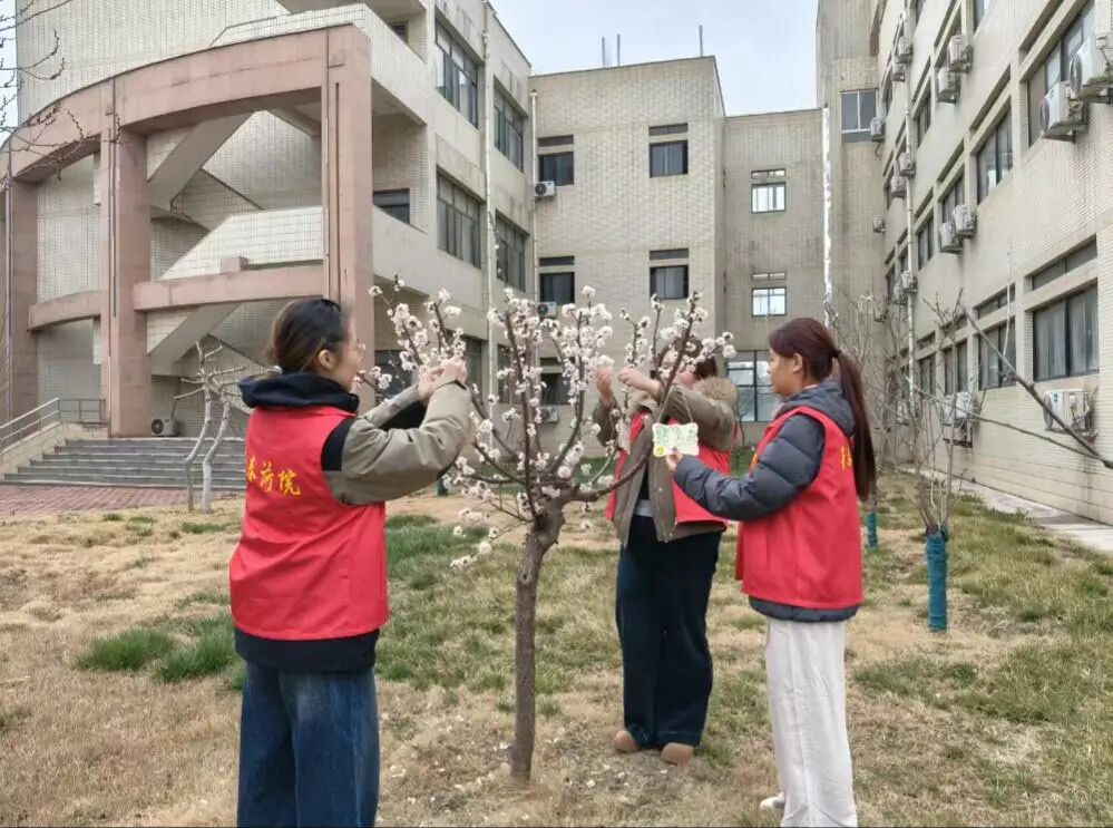 志愿者们拿着制作好的挂牌,来到校园的绿化区域,将挂牌悬挂在树木上。每挂好一个挂牌,志愿者们都会仔细检查,确保挂牌牢固且美观。