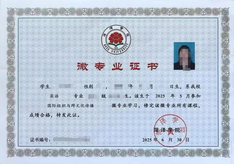 学生完成本微专业全部课程学习并通过考核,达到15学分要求后,由菏泽学院颁发“国际组织与跨文化传播”微专业证书,证书信息纳入学校学籍管理系统,学信网可查询,作为学生跨领域就业、升学的重要能力证明。