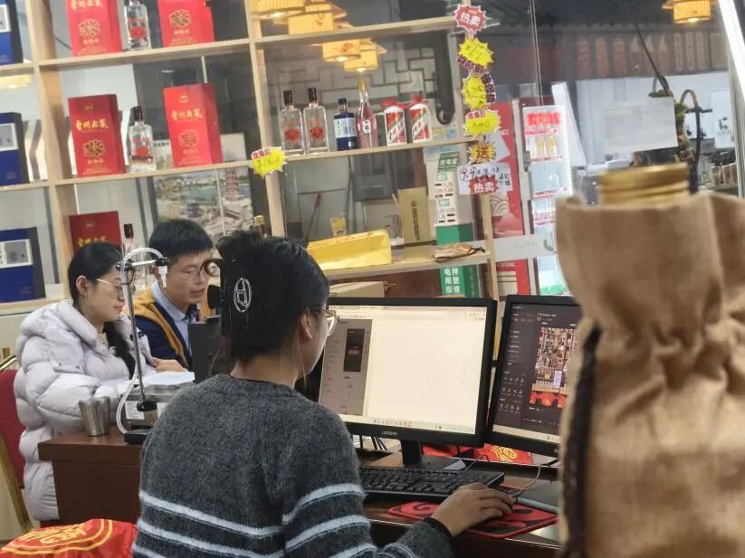随后,师生团队前往曹州老窖门店,将目光转向当下热门的直播电商领域。在门店工作人员的演示下,学生们详细了解了酒类产品直播的流程设计、话术技巧与运营逻辑,从镜头搭建到产品讲解,从互动玩法到订单转化,近距离感受直播电商的实战魅力,为未来从事跨境电商直播相关工作储备了实操认知。