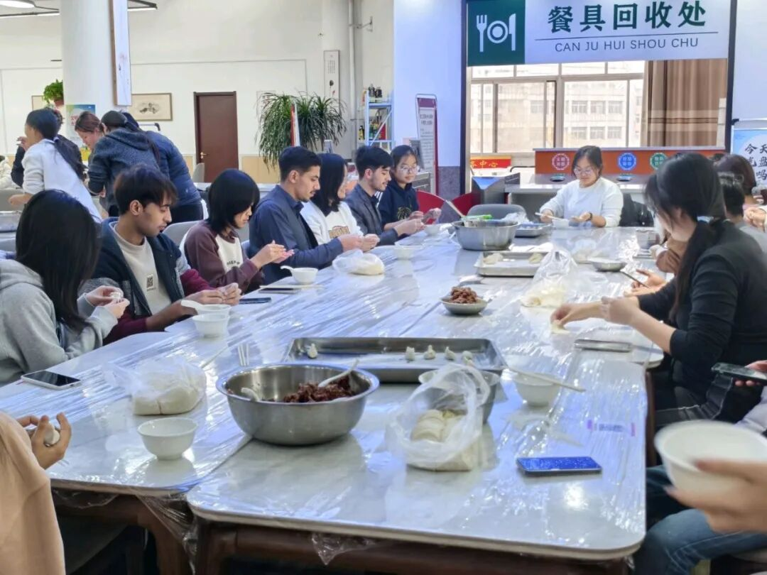 在等待饺子煮熟的间隙,两院学子围坐在一起交流畅谈。外国语学院的同学分享了不同语言中关于冬至的表达与习俗,国际交流学院的同学则带来了海外特色节日的趣闻,文化的碰撞与交融在温馨的氛围中悄然发生。当热气腾腾的饺子端上桌,大家品尝着自己亲手制作的美食,脸上满是幸福与满足。欢声笑语回荡在活动现场,寒冷的冬日因这份暖意变得格外温馨。