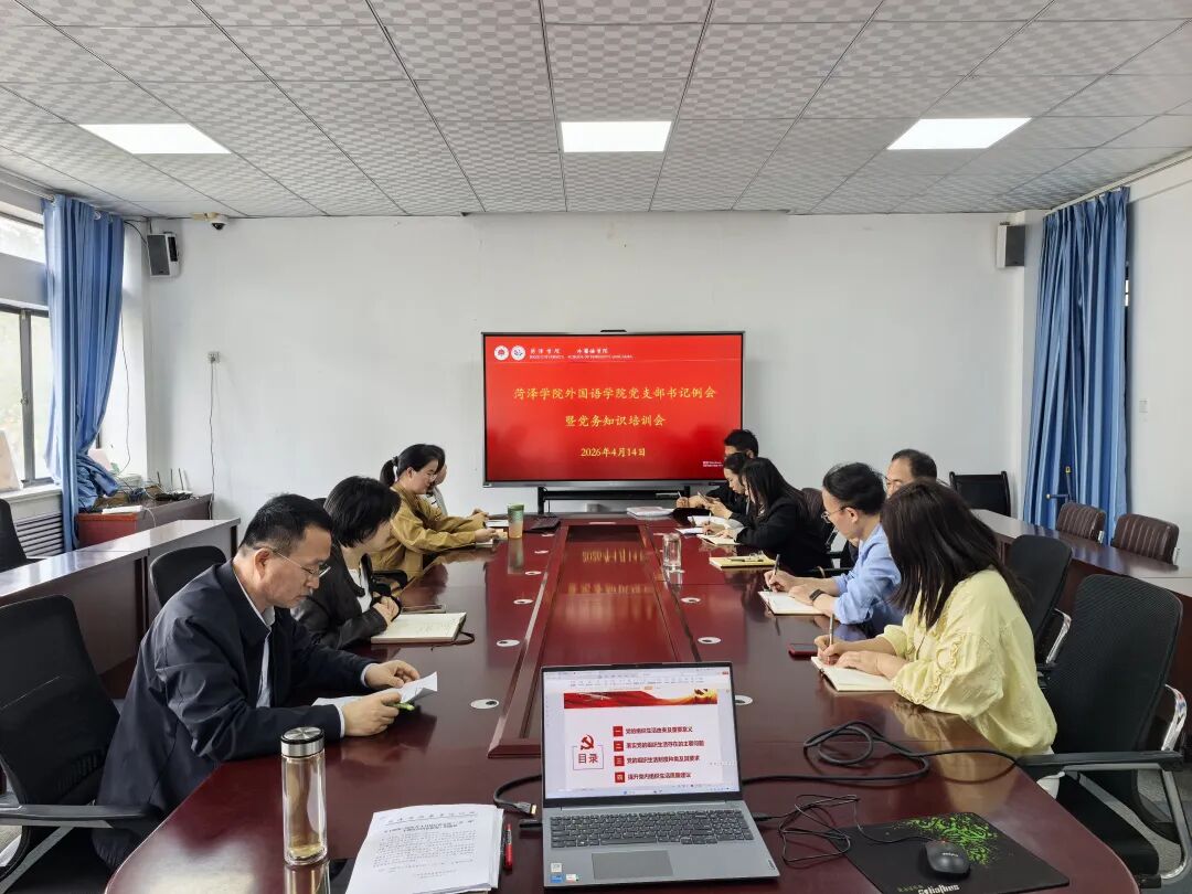 为深入学习贯彻新时代党的建设总要求,进一步强化党支部标准化规范化建设,提升党支部书记履职能力,确保新学期党建工作有序推进、落地见效,4月14日下午,外国语学院在7号教学楼212会议室召开党支部书记工作例会暨党务知识培训会。学院党委领导班子成员、各党支部书记、支委会成员参加,会议由学院党委书记樊庆勤主持。